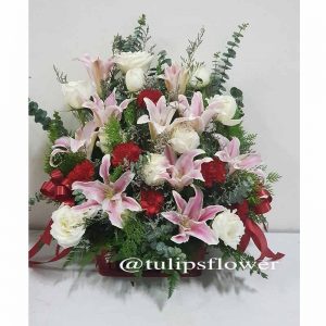 ที่มีให้ มีการจัดเรียงสีขาวแบบคลาสสิก ตะกร้าเป็นสีขาวมีแอสเตอร์มัตสึโมโตะอัลสโตรมีเรียสีขาวและคาร์เนชั่นสีขาวขนาดเล็กรอบดอกลิลลี่สีขาวขนาดใหญ่ นอกจากนี้ยังมีการสัมผัสลมหายใจของทารกเพื่อดึงมันเข้าด้วยกัน กระเช้าดอกไม้มีสีชมพูและสีแดงผสมผสานกับกุหลาบสแนปดราก้อนและคาร์เนชั่น เป็นไปเพื่อความหวังและกระเช้าดอกไม้ความทรงจำอันแสนหวาน มีตะกร้าสีเหลืองที่ยอดเยี่ยม มีดอกกุหลาบดอกลิลลี่ ดอกทานตะวันกับยูคาลิปตัสและใบไม้สีเขียวอื่น ๆ